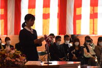 学校長式辞では「行事を通して得た努力と協力があったこと」、「未来に誇れる伝統を創り上げたことへの感謝」、「春休みは進級するための準備期間であること」などが、全校生徒へ伝えられました。