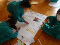 2年生は職場体験学習に向けての準備をしました。学年全体で、スローガンを考えたり、グループに分かれて、班長決め、事業所の場所の確認をしました。
