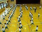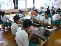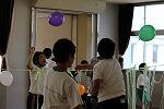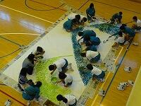 体育館で開会のセレモニーが行われたあと、各会場に分かれて中学生が考えた活動をしました。