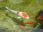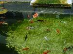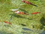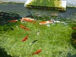 えさをあげに行くと、このように近づいてきます。どの鯉も食欲旺盛です。