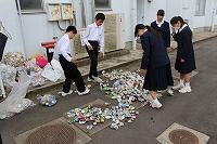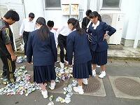 美化委員によって集められた缶がつぶされ、袋に詰められました。