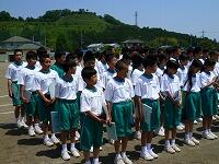 五月晴れの空の下、元気に準備体操をして体力テストに臨みました。