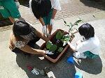 個別支援学級で、なすやミニトマトの苗の植え付けと、朝顔、ラディッシュの
