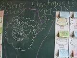 玄関のクリスマス・カクタス 職員室壁面のサンタ 校長室入り口のリース
