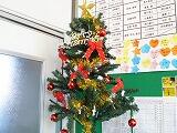 みんなで飾り付けをしたクリスマスツリーが飾られた家庭科室で