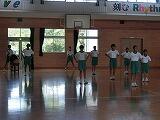 昼休みに体育館で8月15日に開催される皆川地区のふれあいふるさとまつりの練習をしました。1,2年生と応援団の生徒が参加する予定です。