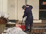 大雪のため、生徒の安全を確保するために、朝早くから先生方は雪かき