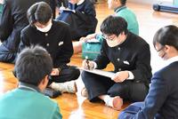 あったか皆川いじめ防止集会では、全校生徒が縦割り班に分かれて、意見を交流しました。