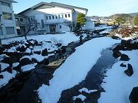 〈校庭の雪もほとんど溶けていません〉 〈藤川も半分以上、雪に埋もれています〉