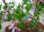 ミニトマトは、しっかりとした実を付け、赤くなるのを待っています。