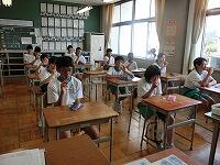 今日の3時間目、1年生は体育館でマット運動を行っていました。