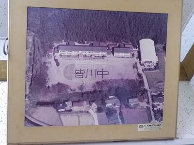 地域のお住まいの皆様や卒業生の方が、教室や体育館、図書室などを回られ、また玄関の歴代PTA会長写真をご覧になりながら思い出話をされていました。皆川中学校は昔、城山の麓にありましたが、その後現在の場所に新校舎が建設されました。今日は皆川城を彷彿とさせる白い校舎が青空に映えています。(城山のふもとに見えるのが皆川公民館です。)