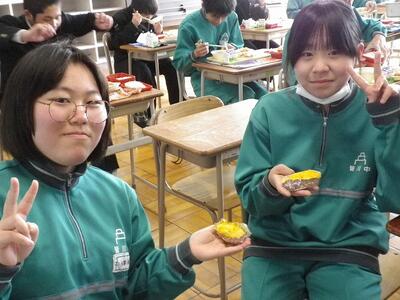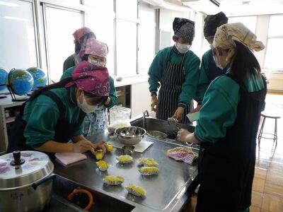 2月18日(水)2年生が家庭科の授業でスィートポテトを作りました。