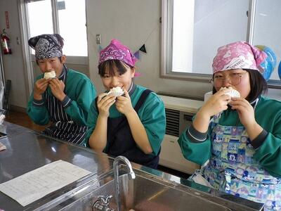 笑顔で「いただきます!」(職員室でもおすそ分けをいただきましたが、本当にしっとり甘くておいしかったです。)