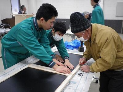 2月14日(土)皆川公民館において、「元気な森づくり立て看板造り事業」に本校の1・2年生が参加しました。