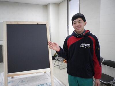 今日は1年生7名、2年生15名全員が集まり、まず自己紹介を行いました。これから始まる看板造りにわくわくする様子が伝わってきました。