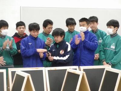 最後に記念撮影をしました。ものづくりは達成感を感じられて楽しいですね!みんなとても素敵な笑顔でそれぞれ感想を述べていました。