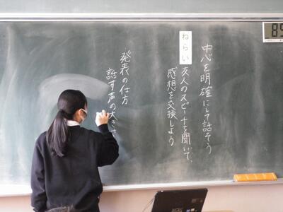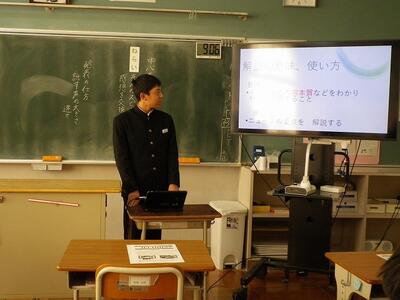 いくつかの言葉を調べた後、発表に移ります。発表前に、自分が調べたことをみんなに伝えるときに気を付ける点について確認しました。