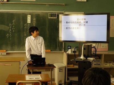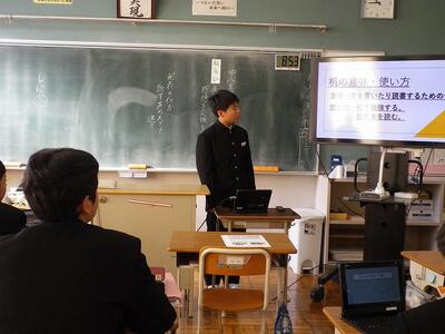 一人一人の発表に対して、先生から、良かった点や改善するとさらに良くなる点などについて、的確なアドバイスがありました。これからPower Pointを使って発表する場面はますます増えていくでしょう。今日はとてもよい経験をしましたね。また、友達の発表に対して積極的に意見や感想を述べる姿がとても素晴らしく、互いに学び合い高め合う学級の様子が伝わってきました。