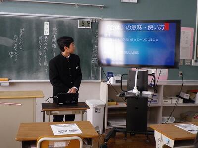 12月4日(木)、1年生がPower Pointを使って、それぞれが調べた「言葉のちがい」についての発表会を行いました。