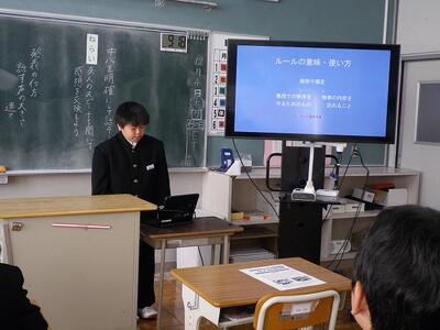 最後の発表は、「ルール・決まり」についてです。「ルール」は「決まり」の外来語なのかと漠然と思っていましたが、それぞれの使い方は違っていました。学校では、「ルール」も「決まり」も両方使われています。校則はルール?決まり?どちらなのでしょう?