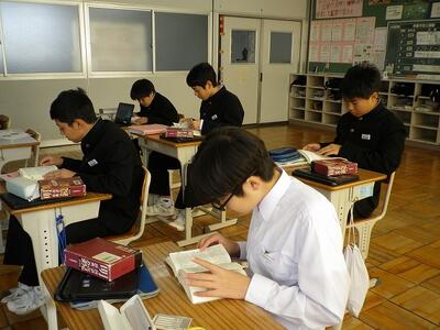 今日は、生徒が選んだ「似ていることば」について調べ、その意味や使い方などを紹介します。授業のはじめに、国語辞典を使い、先生が示した言葉を調べる活動でウォームアップです。