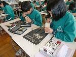 5校時、1年生は美術の授業で印箱を作っていました。彫刻刀で熱心に彫っています。