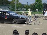 *スケアードストレイト方式------危険な自転車走行に伴う交通事故の再現スタントによって,