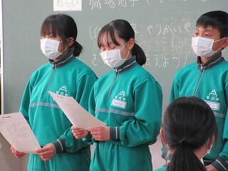 ・社会で活躍している職業人の方々からのお話を聞くことによって、中学生が自分の将来の生き方について考えを深めることができました。お忙しいところ、本校の1・2年生のために貴重なお時間をつくっていただい、感謝申し上げます。お世話になりました。