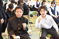 私立高校の入試体系や、県立高校の一般入試・特色選抜入試などについて、資料をもとに丁寧に確認しました。3年生も真剣なまなざしで説明を聞き、自分の進路を考えていました。