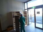 保健室の中を空っぽにして、ワックスがけをしています。だから、あんな所にも