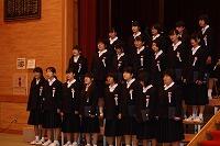 そしてクライマックスの卒業生による学年合唱。たった40名程とは思えない声量のある大変すばらしい『3月9日』の合唱のハーモニーが会場にこだまし、感動の渦に包まれました。男女を問わず泣いていても一生懸命歌おうとしている姿に、在校生は先輩方の偉大さを実感したことでしょう。全校合唱の『旅立ちの日に』も最高のできばえとなりました。