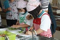 生徒3人、先生3人による調理実習。たまご炒飯づくりでした。