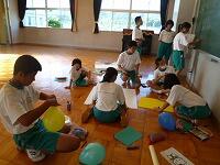 〈塗り絵の準備中〉           〈風船バレー、風船の準備Ok〉