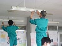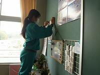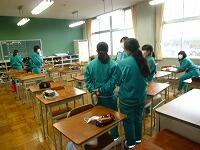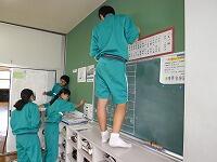 1年間お世話になった教室をきれいにしようと、教室の掲示物を丁寧にはがしたり、棚や蛍光灯のかさをきれいに拭いたり、ワークシート等を配ったりと、一人一人が自分の分担をしっかりこなしていました。