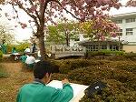 <美術の時間に一年生が描く風景画。今日はちょっと肌寒いかな・・・>