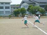 1年生の体育(陸上)の様子です。リレーのバトンバスの練習中!