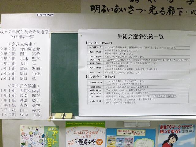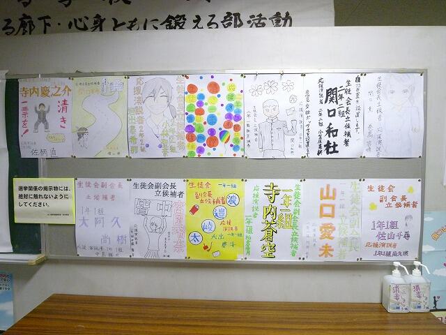 昇降口にはポスターと公約が掲示されています絵文字:星
