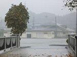 校庭と川の境がなくなってしまいそうです・・・朝の藤川 夕方の藤川