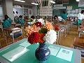 今日は、共同訪問が行われ、多くのお客様が来校されました。日頃から教員と生徒が一緒になって黙動清掃活動をしたり、元気で礼儀正しい挨拶でお客様をお迎えしたり、そして何よりも真剣に学習に取り組んでいますが、そうした「本校ならではのよさ」を様々な形で、お客様に見ていただきました。校内には、生徒のご家庭からいただいた綺麗なお花を飾った花びんが並べられ、季節感を心で味わうことができました。ご協力いただき、ありがとうございました。