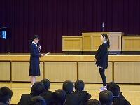 ▲学年代表の生徒の作文発表です。