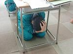 教室にいた生徒全員がすぐに机の下にもぐり、避難しました。