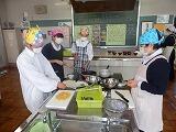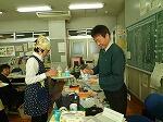 中学生が小学生にお手本を示しながら小学生も積極的に生クリームやフルーツを