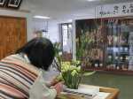 今日の花は、桃と菜の花と黄色のカーネーションでした。春らしい色合いで見ていて、心が温かくなりました。大島様が花を生けている間にちょっとおしゃべりをしました。