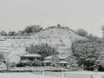 昨日の夜から降った雪が積もっています。皆川地区のシンボルである「城山」もすっ