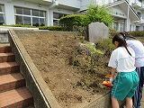 昨日、職場体験のない生徒と、プランターや花壇に花を植えました。