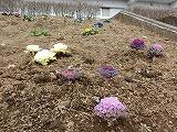 美化委員会の生徒がパンジーと葉ボタンを植えました。