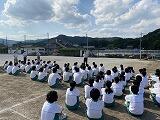 集会時も「3密」を避けるため、前後、左右の間隔を十分にとって座っています。