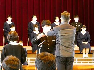 3年生は早くから練習を重ねており、卒業生としての自覚を感じる立派な態度でした。1・2年生も3年生を見習い、素晴らしい態度で臨んでいました。また合唱練習も行われ、3年ぶりに全校生徒の歌声が会場内に響き渡りました。