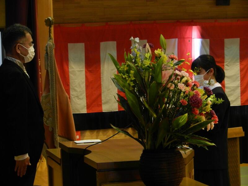 そんな中、前年度に引き続きアシストネットの大島様に来校いただき、ボランティアで、正面玄関にとても綺麗な花を生けていただいています。